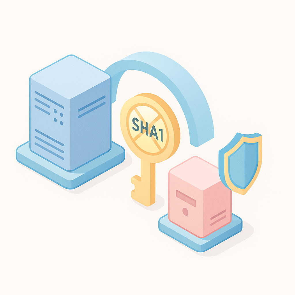 概要 RHEL9(およびAlmaLinux9, Rocky9など)では、SSHの暗号化アルゴリズムやハッシュ方式が OpenSSLポリシー(crypto policy) で一括制御される。そのため、/etc/ssh/sshd_config を編集しても、脆弱なSHA-1や古い暗号が残る場合がある。この記事では、暗号ポリシーの確認からSHA-1の無効化、検証までの手順を整理する。 1. 暗号化アルゴリズムの制御構造を理解する RHEL9では、SSHサーバ(sshd)の暗号制御はOpenSSLを経由して行われる。そのため、sshd_config のみで脆弱なアルゴリズムを除外しても、OS全体のポリシーが優先される。 2. デフォルトの暗号化アルゴリズムポリシーを確認 まず、現在のシステム暗号ポリシーを確認する。 # update-crypto-policies --show [root@localhost ~]# update-crypto-policies --show DEFAULT DEFAULT はRHEL標準ポリシーで、SHA-1がまだ一部許可されている。 DEFAULTポリシーは以下に設定されている /usr/share/crypto-policies/policies [root@localhost ~]# cd /usr/share/crypto-policies/policies…